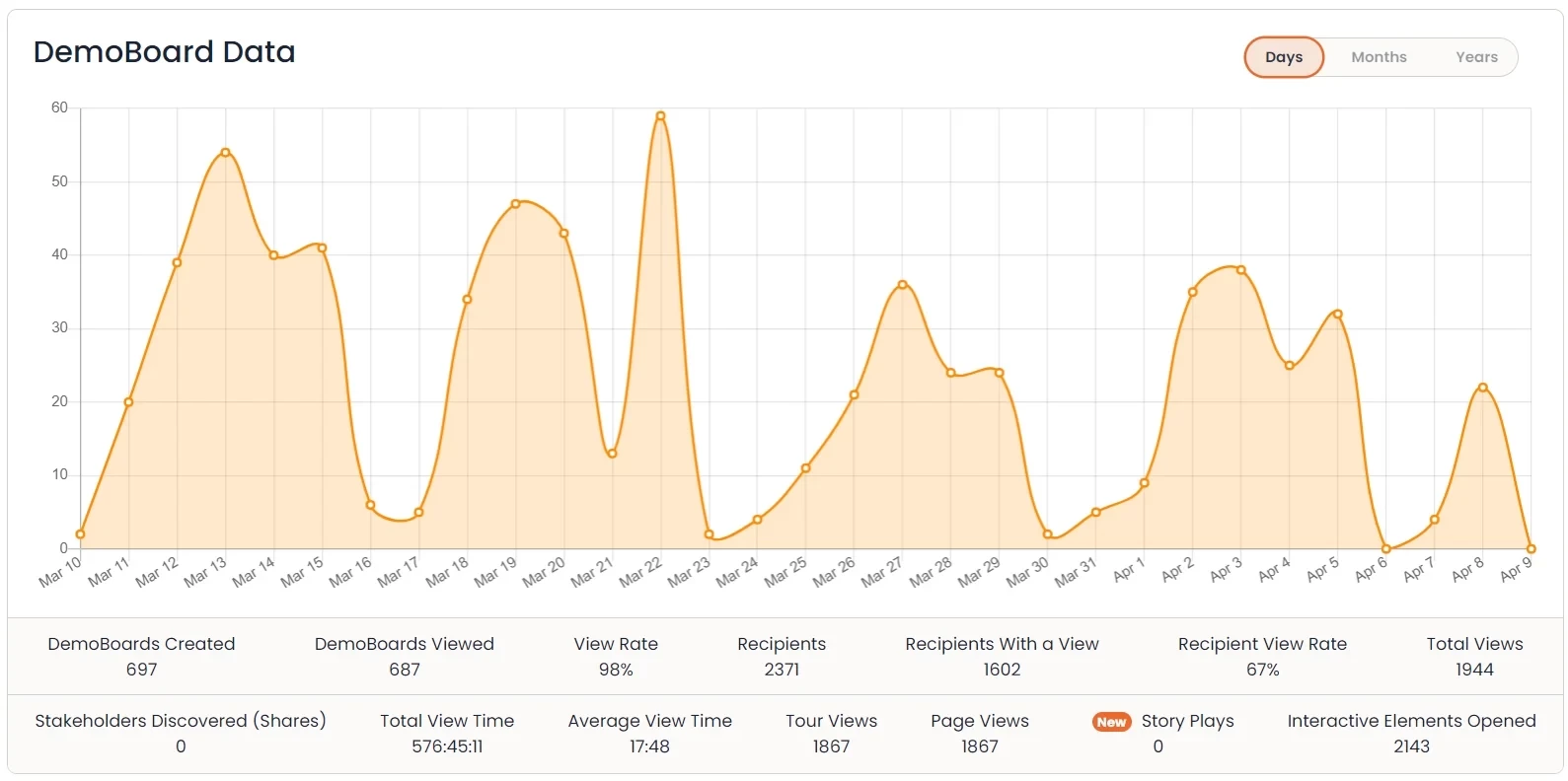 DemoBoards Viewed - The number of DemoBoard links that have been viewed.
