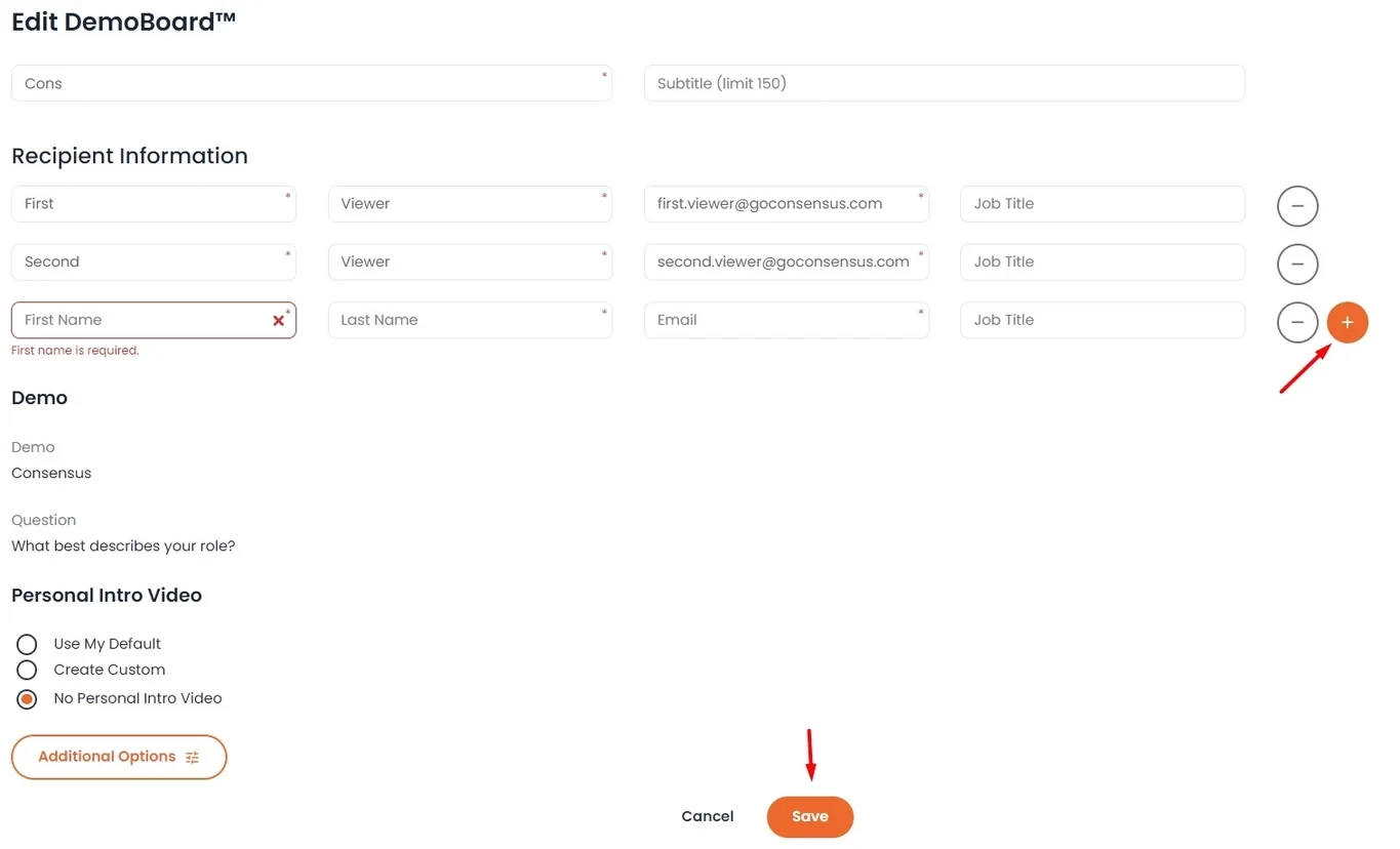 Recipients - Total number of recipients added to DemoBoard Invite.