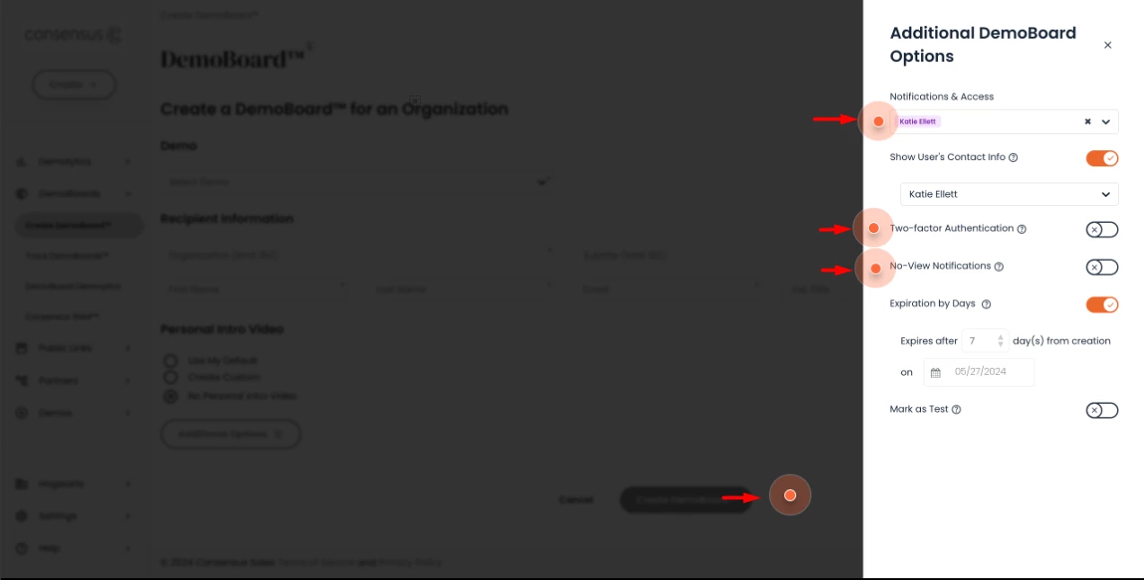 Shares by users - Total number of additional recipients added by the sender after a DemoBoard link has been created.