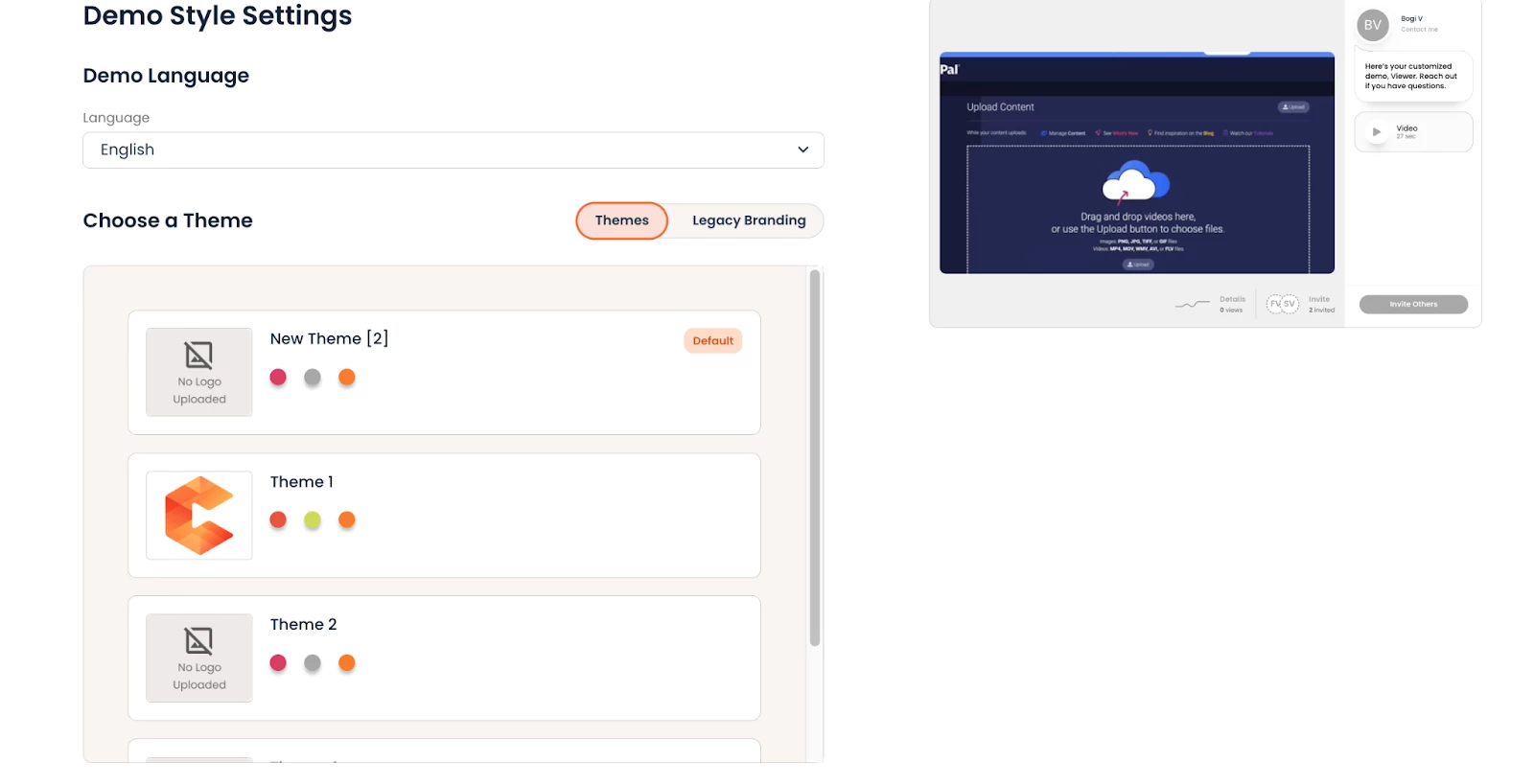 💡 Important: Once a user applies a theme to a demo that previously used legacy branding, that demo permanently switches to themes. The legacy branding settings are no longer accessible for that demo.