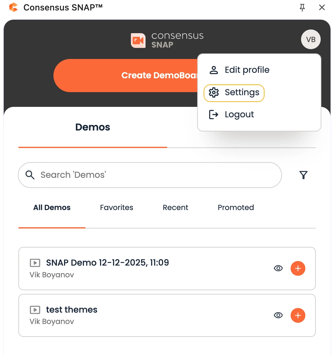 Once these are in place, you can customize the theme for your Snap videos by opening the Snap extension, logging in, and navigating to Settings.