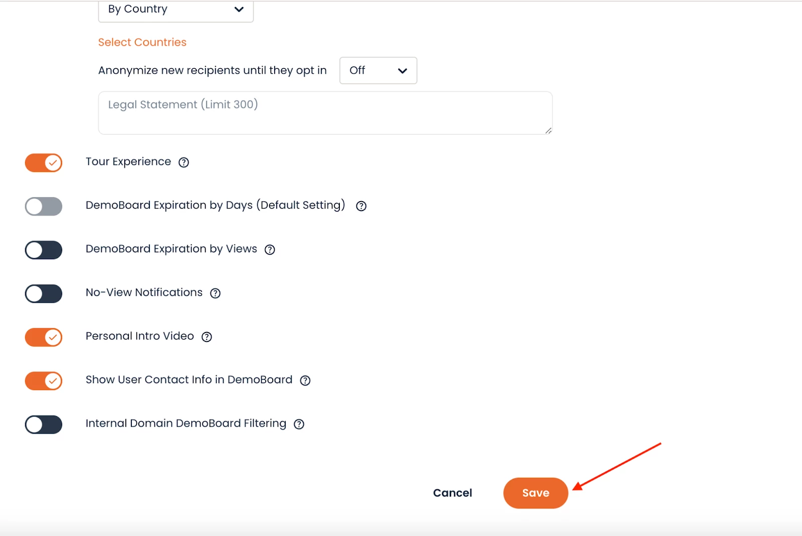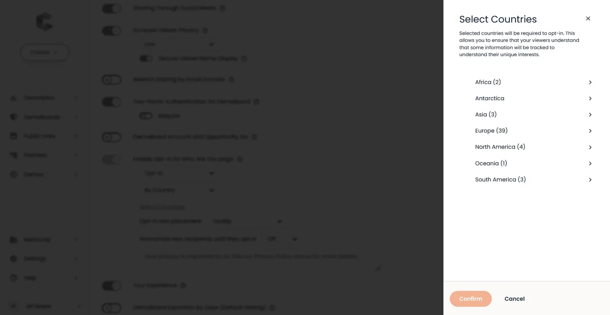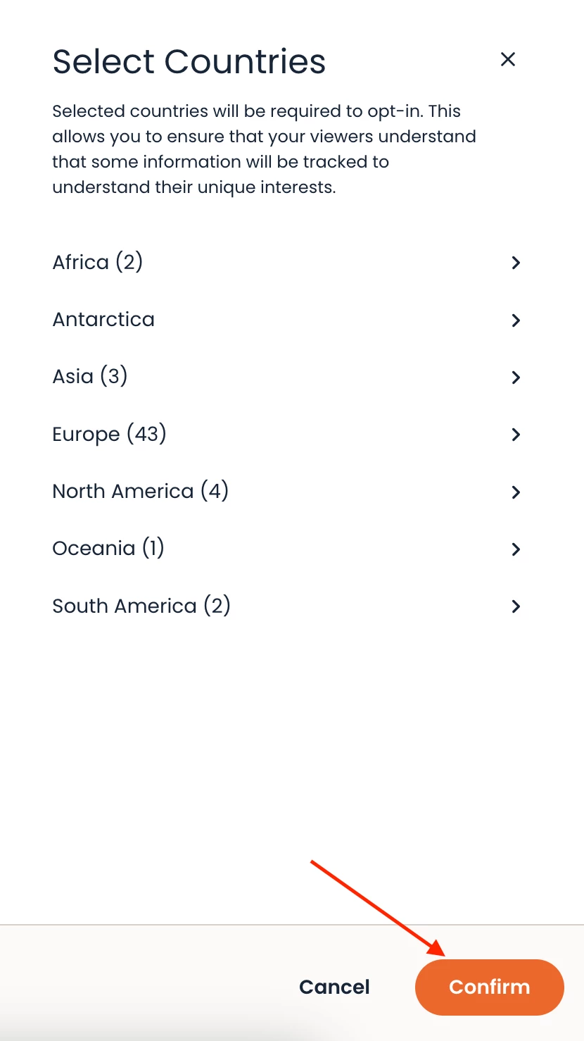 Viewers within the selected Countries will need to Opt-In in order to View your Demos.