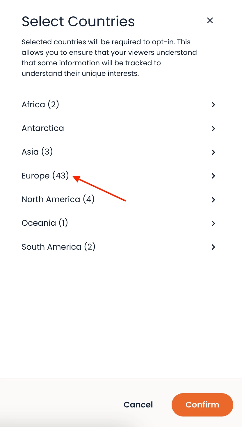Consensus allows you to determine if you want to show the Opt-In within the 'Who Are You' and 'Lead Form' pages to All Viewers or to limit this by selecting specific countries.