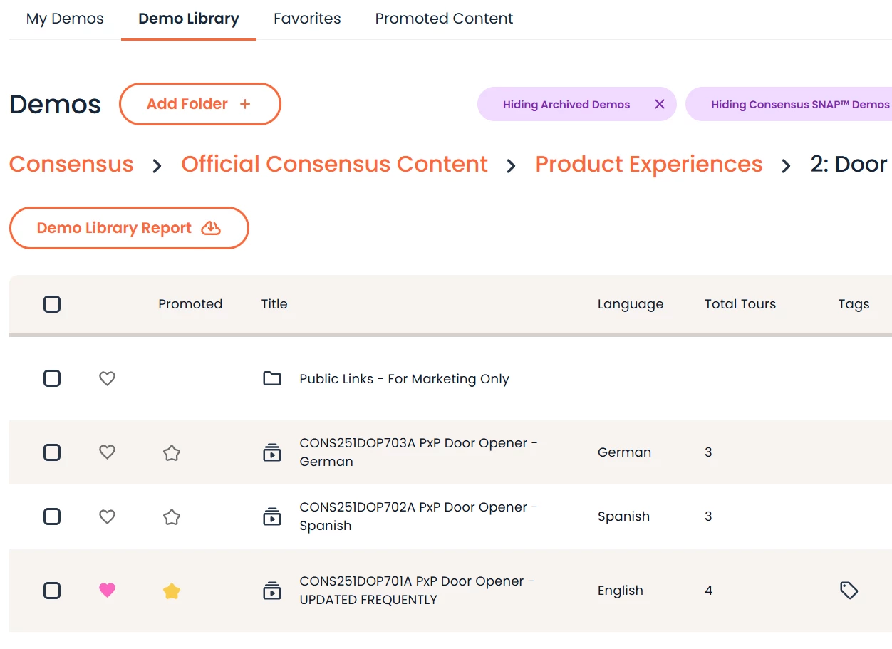 Promoted content ensures that your most vital demo assets are always front and center, leading to more efficient content discovery, enhanced strategic alignment and ultimately, greater success for your teams!