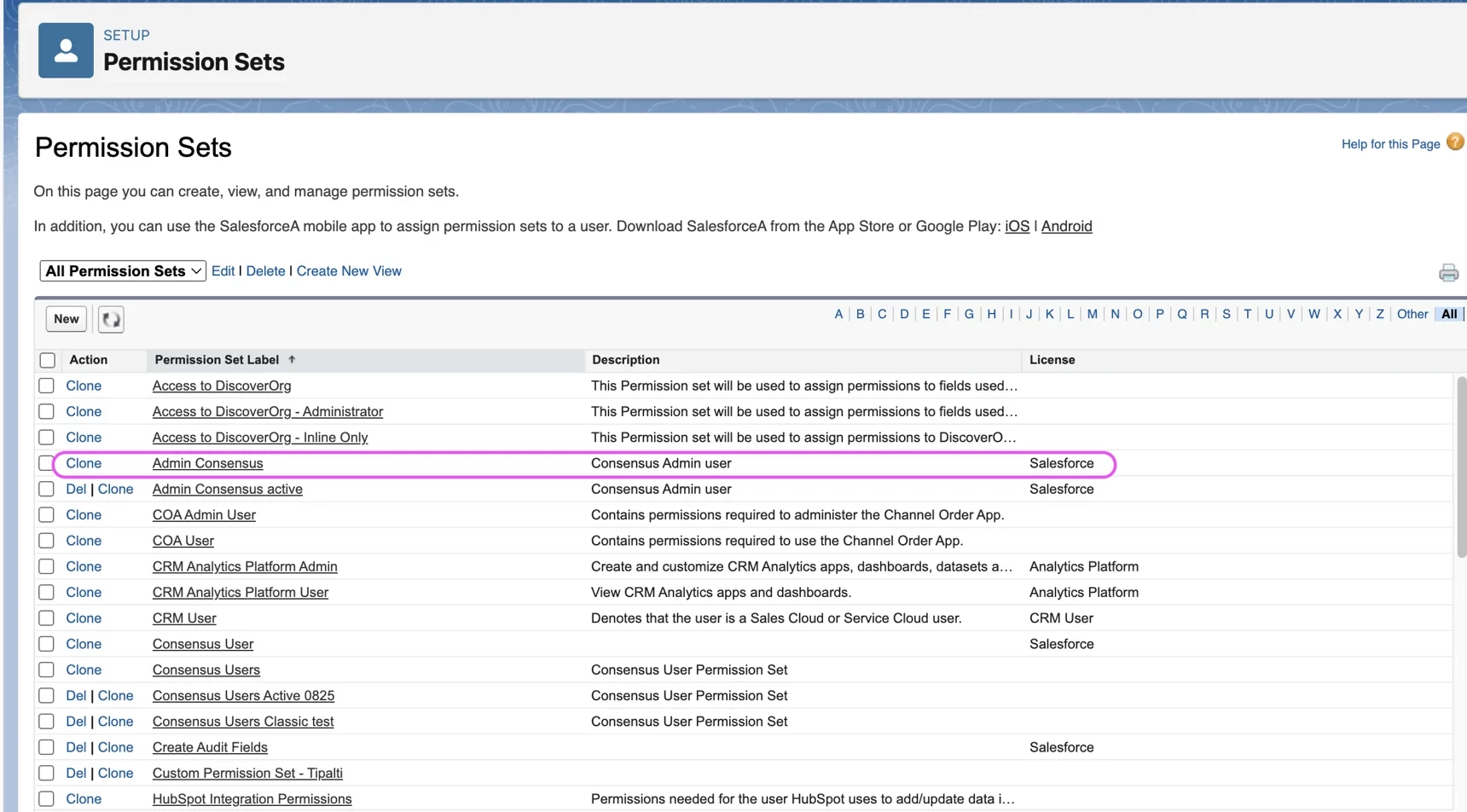 Admin Permission Set (for Admin access to the Consensus app in SFDC)