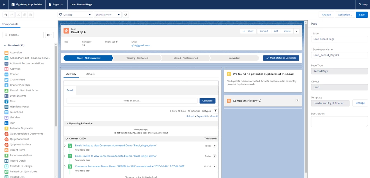 - Allows Salesforce users to see detailed engagement data when contacts or leads engage with Consensus demos