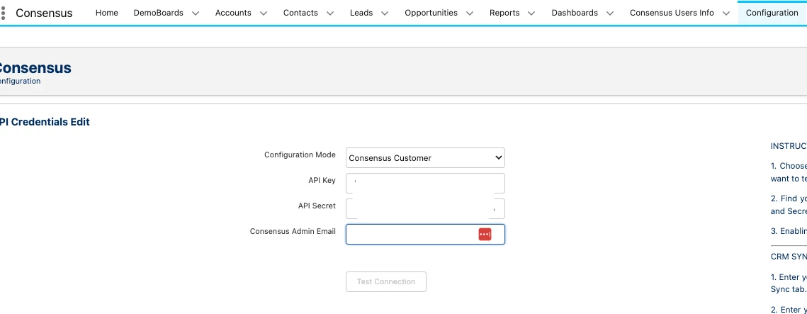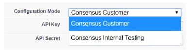 - Click Test Connection to test the API settings. Consensus displays a success message if it is communicating with the API properly.