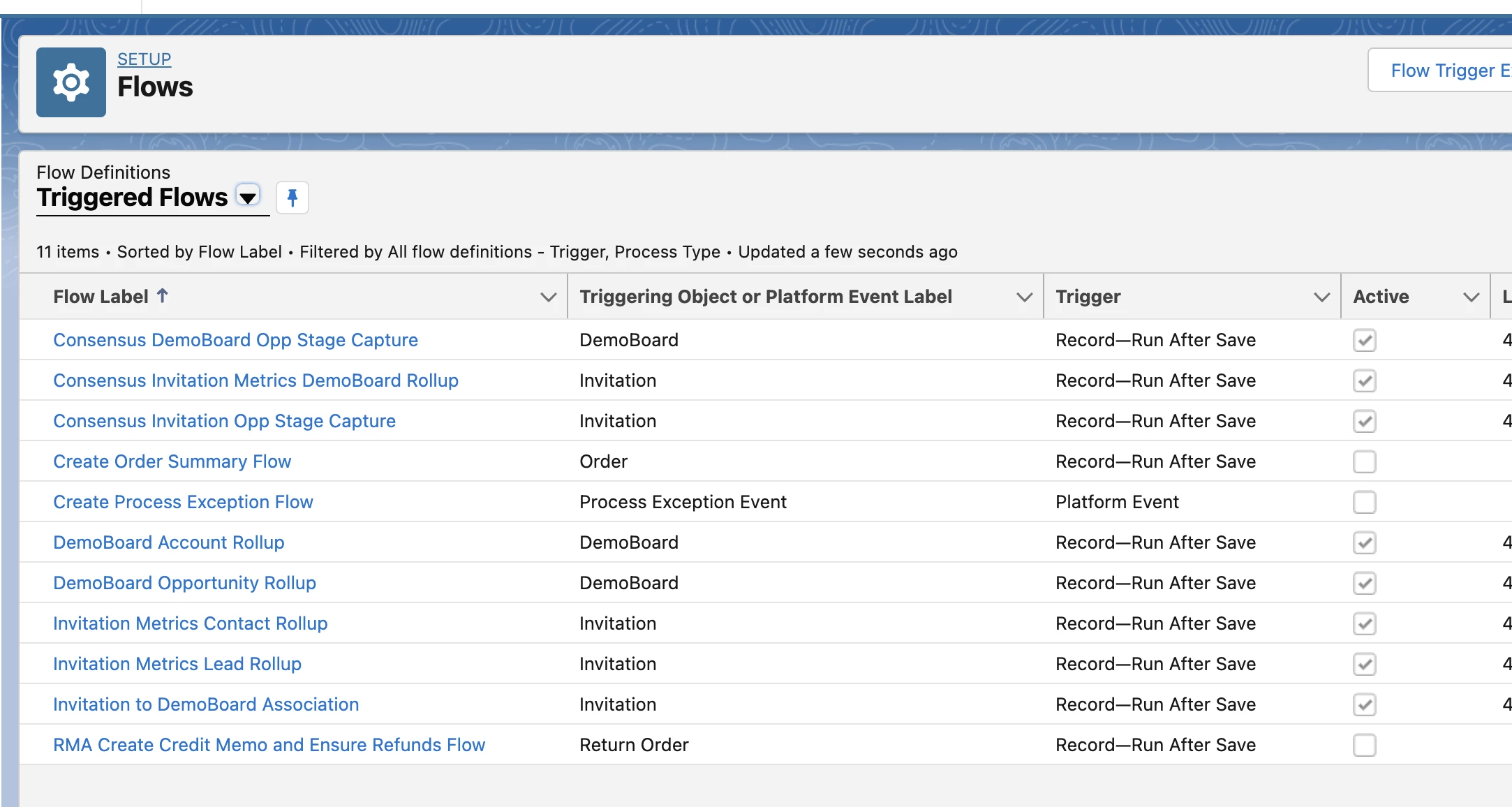Once you see the list of Flows (note you might need to make a filtered view to more easily identify the Consensus packaged flows), then you will need to view the details of each one and "deactivate" it.