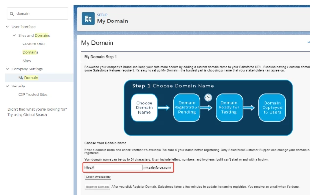NOTE: If you already have a Domain name for your Salesforce instance you can skip this paragraph.