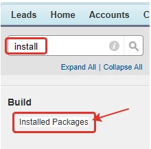 When the all plugin components are removed open the Installed Packages Salesforce page by typing the word “install” in the Quick Search box on the Setup page.