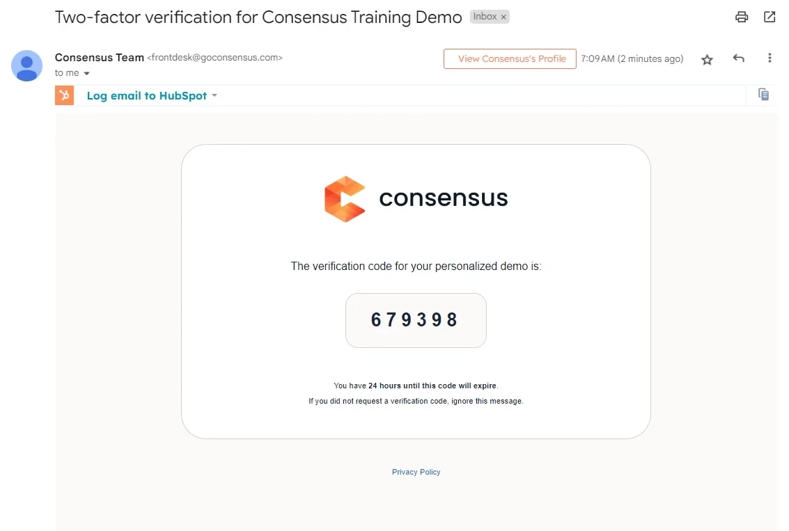 Two-Factor Authentication (2FA) is available to add to your DemoBoards. When enabled, users will select themselves as one of the viewers in a DemoBoard. Then, they’ll receive a 6-digit code via email that they’ll need to enter in order to verify their identity.