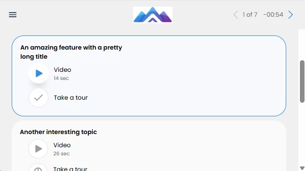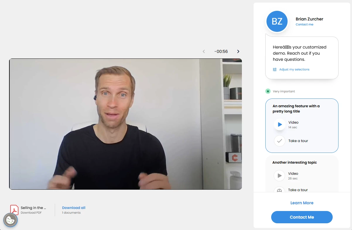 Experience Mode focuses fully on the experience itself to absorb the viewer into the video, personalization or tour you want them to experience. Controls and access to other features are then easily available on hover over to ensure the viewer still feels in control of the demo.